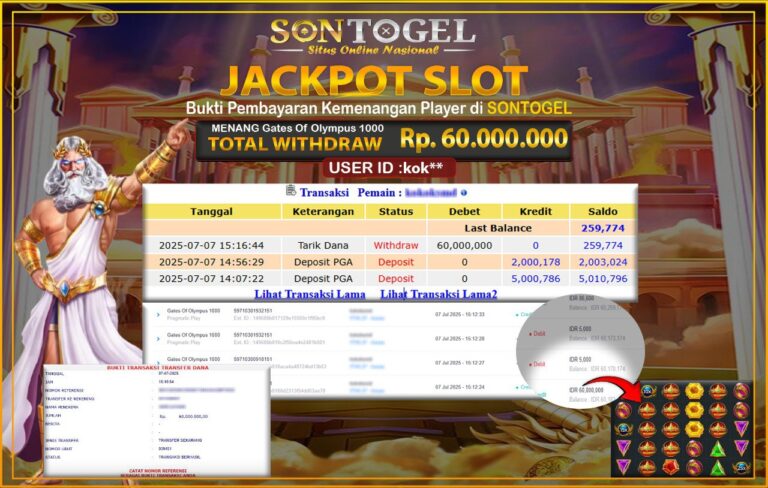 JP SONTOGEL SLOT GATES OF OLYMPUS Rp.60.000.000