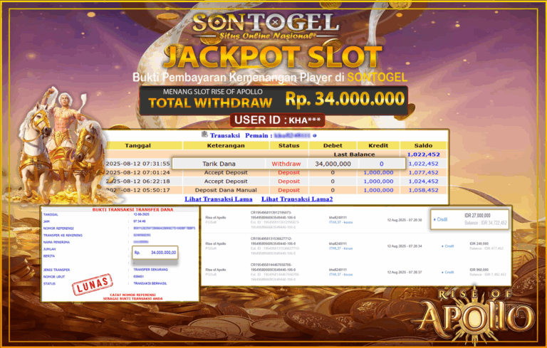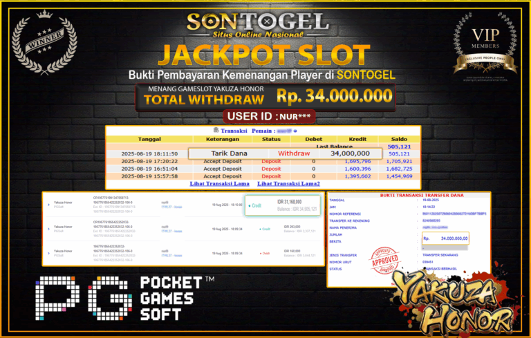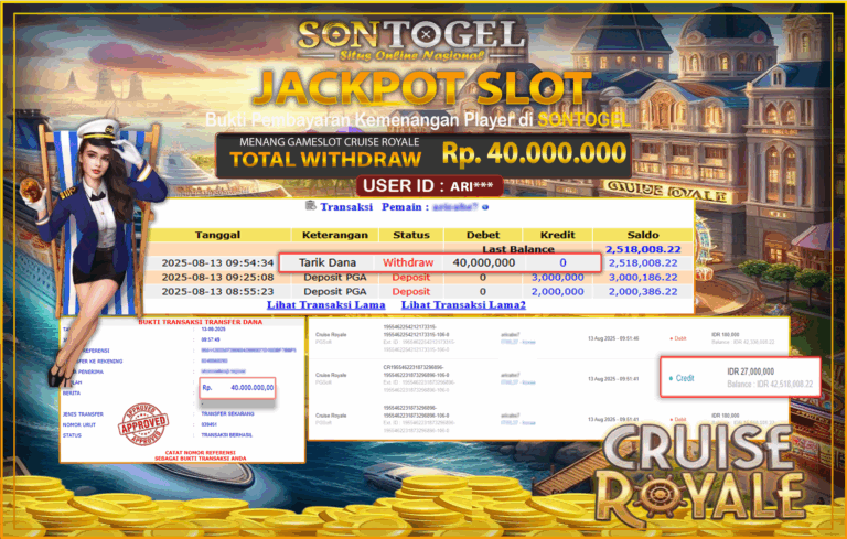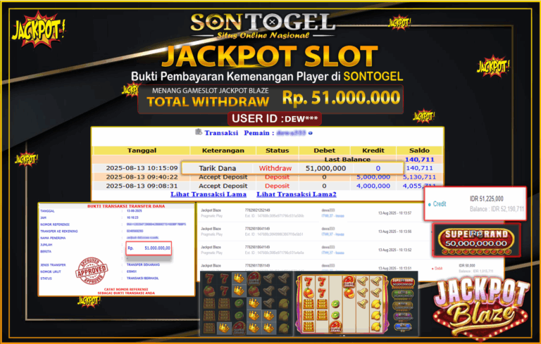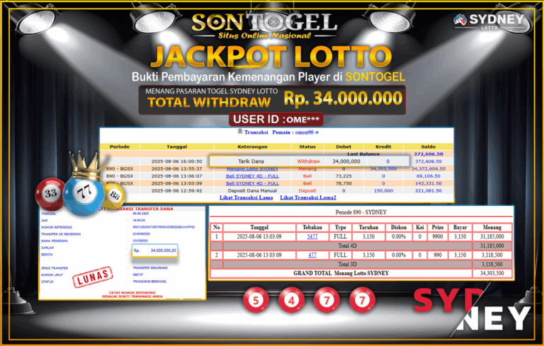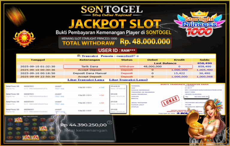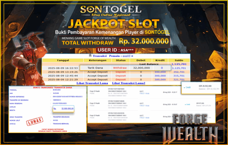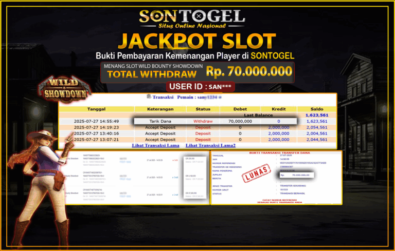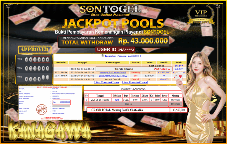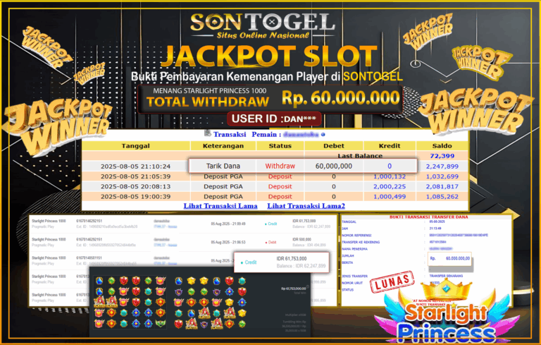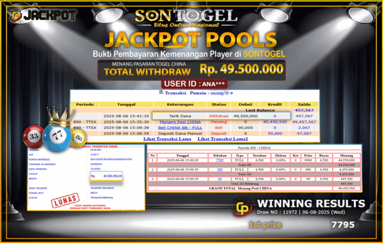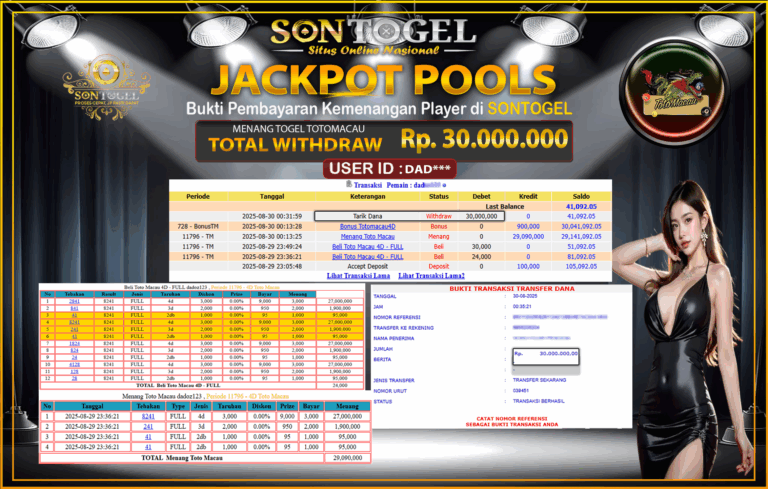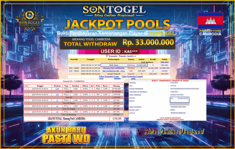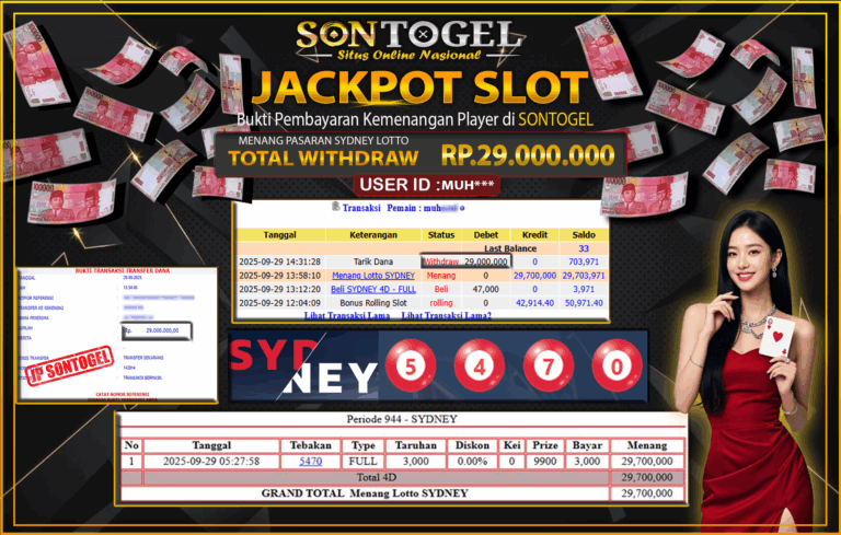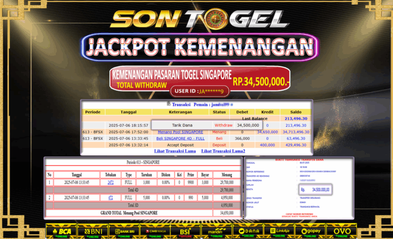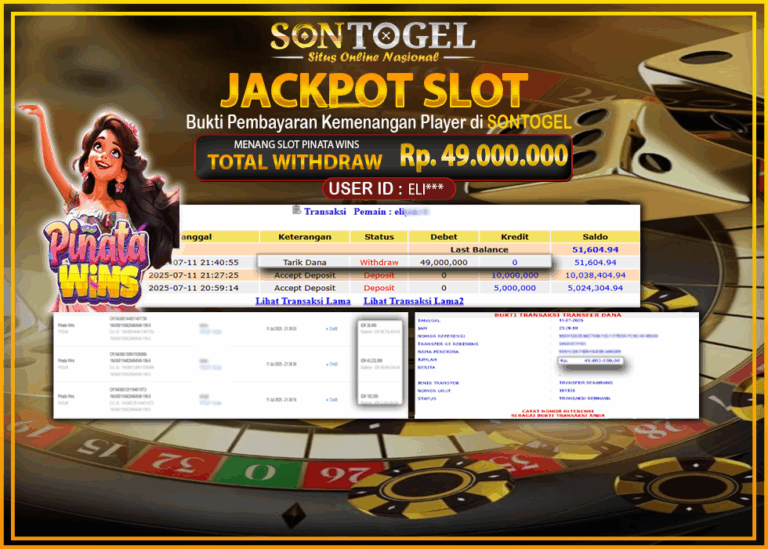 BUKTI JP SONTOGEL – Situs Togel Online, Live Casino dan Slot Online Terpercaya yang terbukti membayar berapapun kemenangan Anda tanpa kekurangan sepeserpun. Jika Anda masih mencari Situs Terpercaya, jangan ragu untuk bermain di SONTOGEL. Dalam 1 akun Anda bisa menikmati semua permainan dengan minimal deposit hanya Rp. 5.000,- saja. Berbagai pasaran togel resmi bisa Anda…