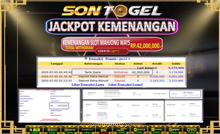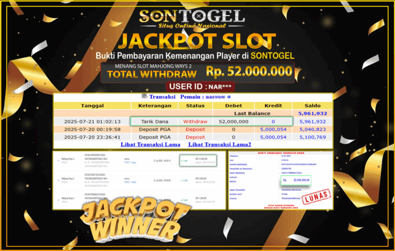 JP SONTOGEL SLOT MAHJONG WAYS Rp.42.000.000