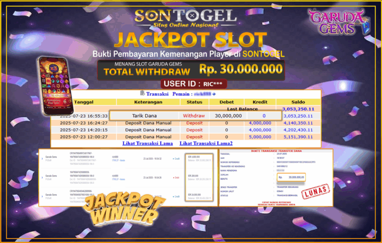 JP SONTOGEL SLOT GARUDA GEMS Rp.30.000.000