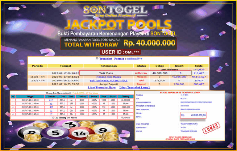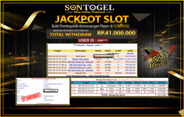 JP SONTOGEL PASARAN TOGEL TOTO MACAU Rp.41.000.000