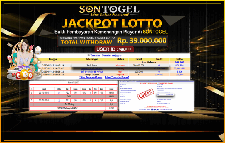 JP SONTOGEL PASARAN TOGEL SYDNEY Rp.39.000.000