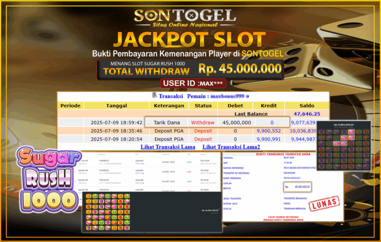 JP SONTOGEL SLOT SUGAR RUSH 1000 Rp.45.000.000