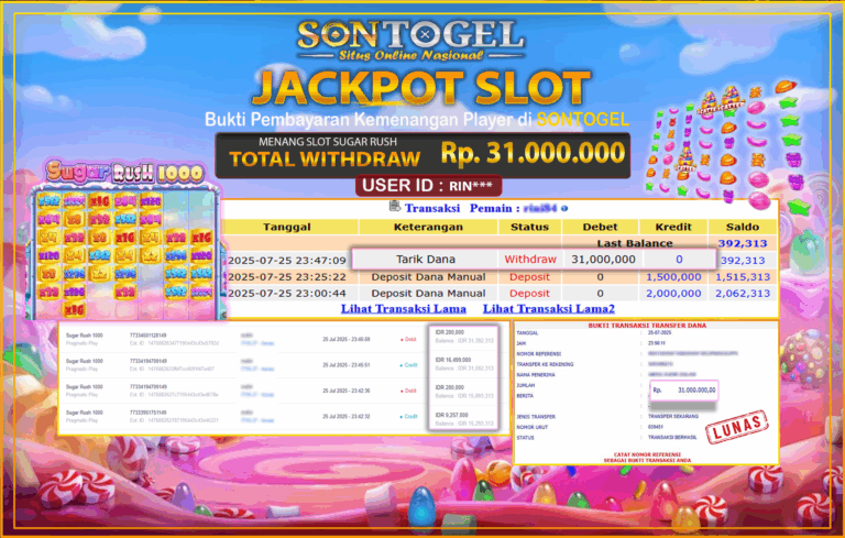 JP SONTOGEL SLOT SUGAR RUSH 1000 Rp.33.000.000