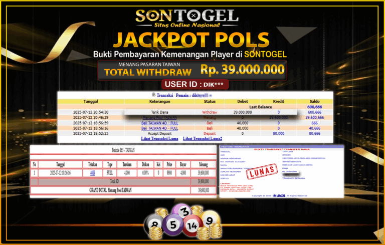 JP SONTOGEL PASARAN TOGEL TAIWAN Rp.39.000.000