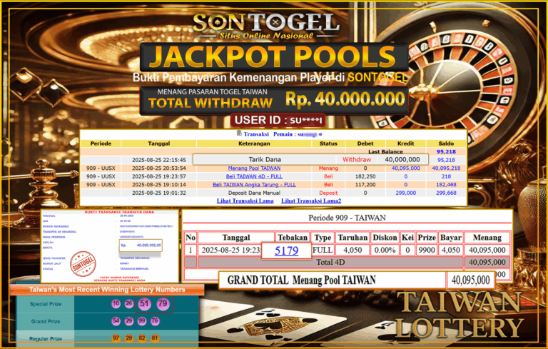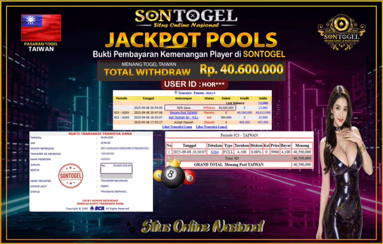 JP SONTOGEL PASARAN TOGEL TAIWAN Rp.40.600.000