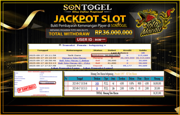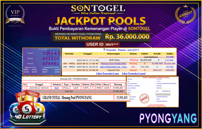 JP SONTOGEL PASARAN TOGEL TOTO MACAU Rp.36.000.000