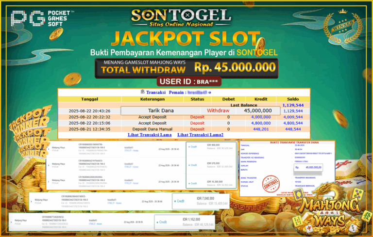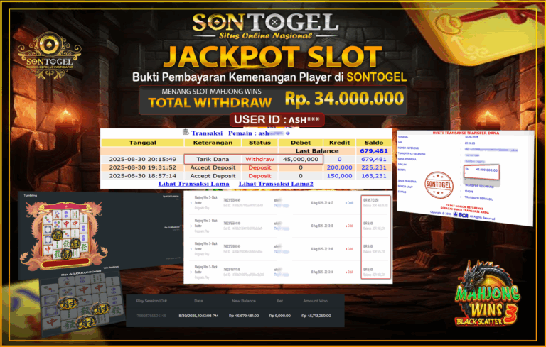 JP SONTOGEL SLOT MAHJONG WAYS Rp.44.000.000