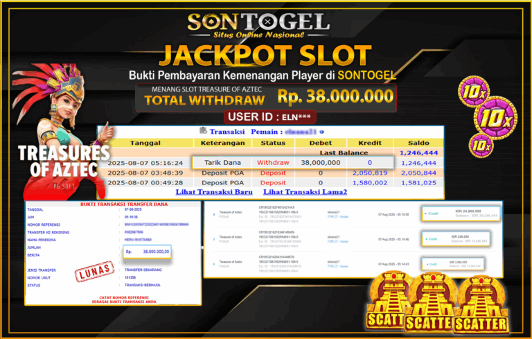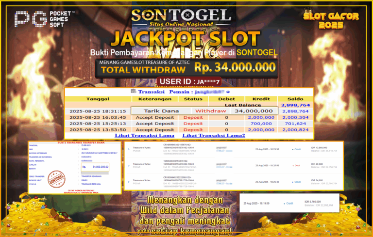 JP SONTOGEL SLOT TREASURE OF AZTEC Rp.45.000.000