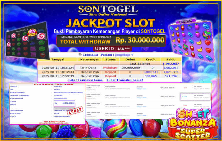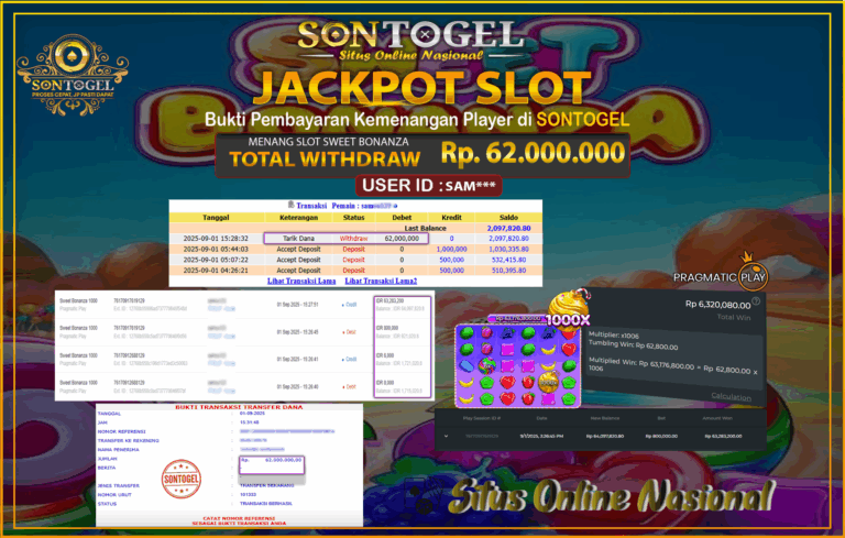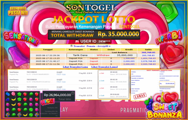 JP SONTOGEL SLOT SWEET BONANZA Rp.32.000.000