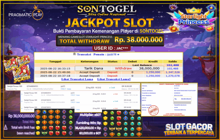 JP SONTOGEL SLOT STARLIGHT PRINCESS Rp.34.000.000