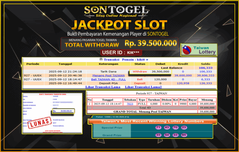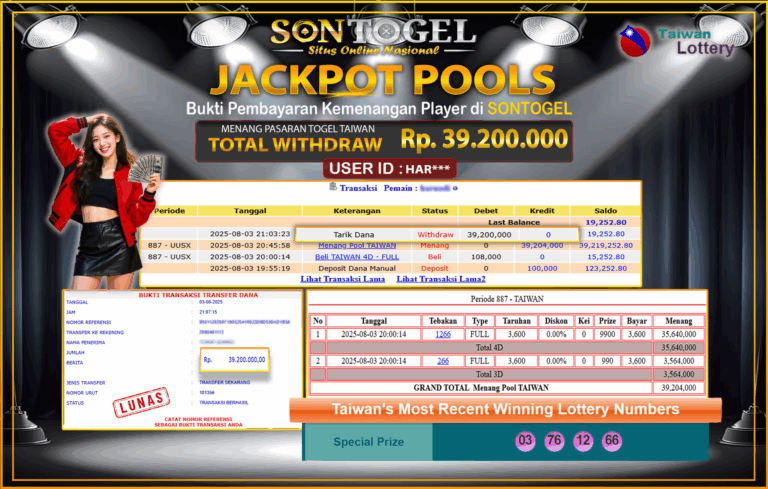JP SONTOGEL PASARAN TOGEL TAIWAN Rp.39.500.000