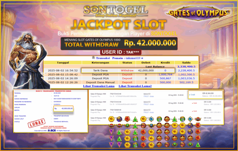 JP SONTOGEL SLOT GATES OF OLYMPUS Rp.42.000.000