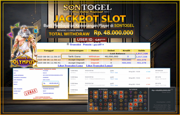 JP SONTOGEL SLOT GATES OF OLYMPUS Rp.50.000.000