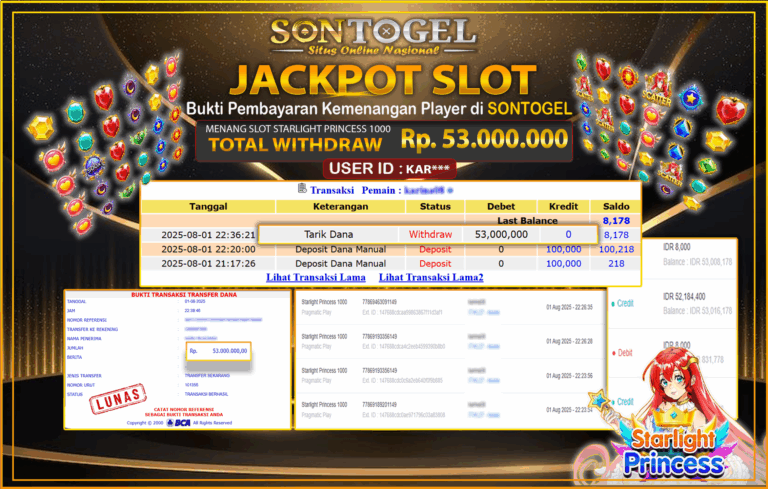 JP SONTOGEL SLOT STARLIGHT PRINCESS Rp.53.000.000
