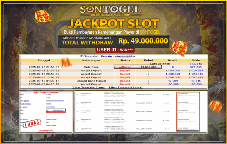 JP SONTOGEL SLOT MAHJONG WAYS Rp.49.000.000