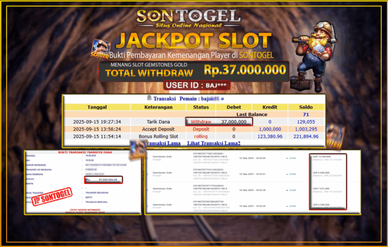 JP SONTOGEL SLOT 15.000 X MANIA Rp.61.000.000