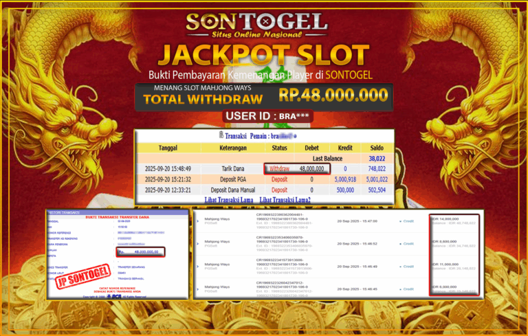 JP SONTOGEL SLOT MAHJONG WAYS Rp.48.000.000