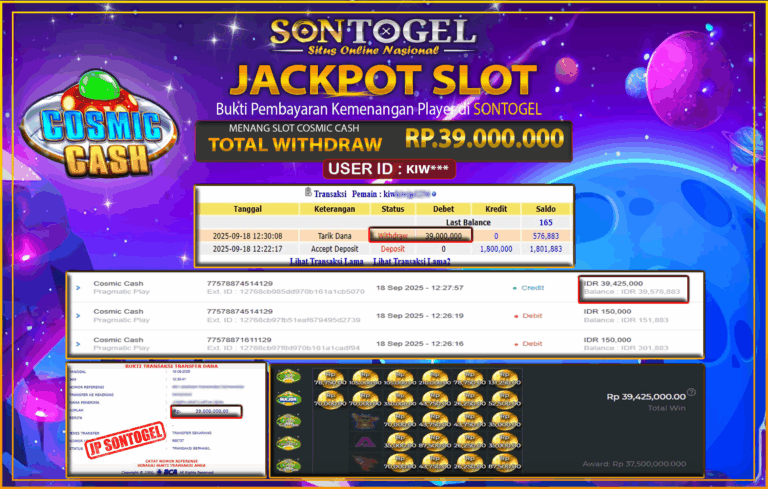 JP SONTOGEL SLOT COSMIC CASH Rp.39.000.000