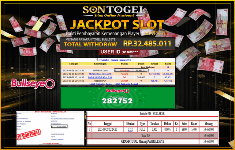 JP SONTOGEL PASARAN TOGEL BULLSEYE Rp.32.485.011