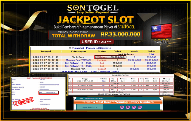 JP SONTOGEL PASARAN TOGEL TAIWAN Rp.33.000.000