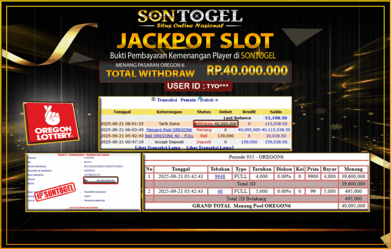 JP SONTOGEL PASARAN TOGEL OREGON 6 Rp.40.000.000