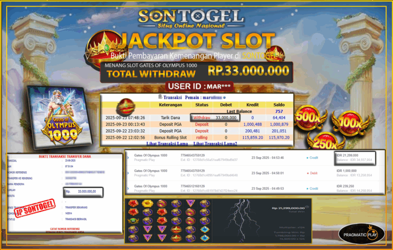 JP SONTOGEL SLOT GATES OF OLYMPUS 1000 Rp.33.000.000