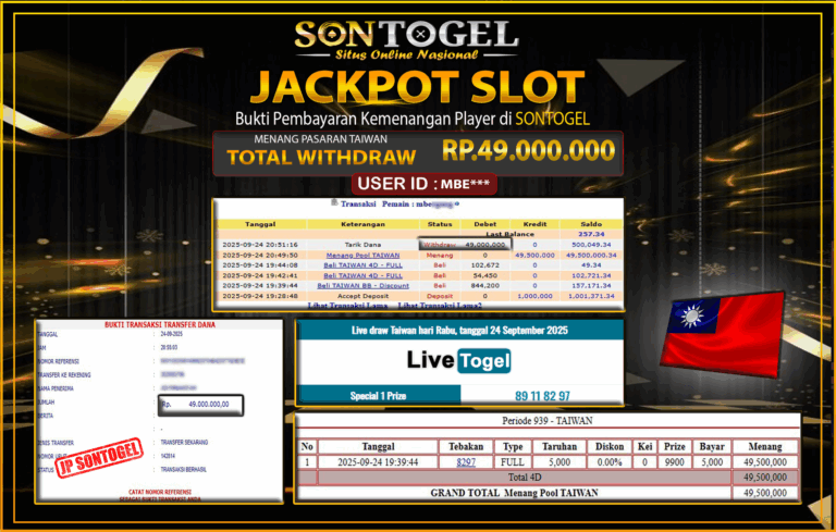JP SONTOGEL PASARAN TOGEL TAIWAN Rp.49.500.000