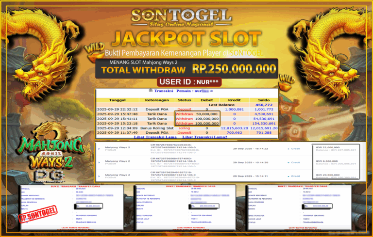 JP SONTOGEL SLOT MAHJONG WAYS Rp.32.000.000