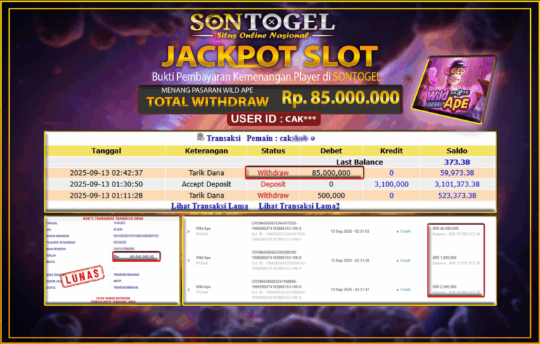 JP SONTOGEL SLOT WILD APE Rp.85.000.000