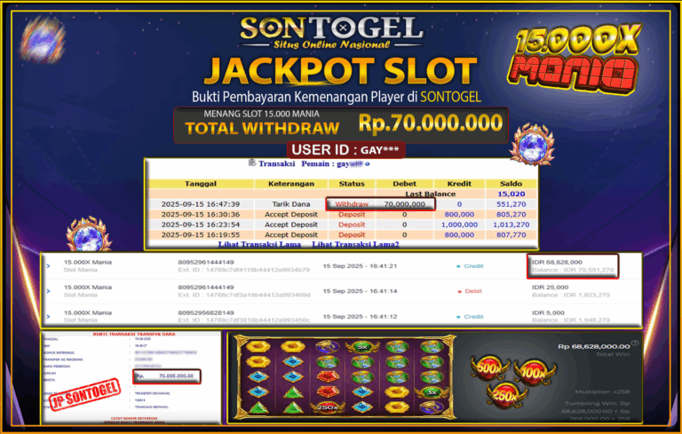 JP SONTOGEL SLOT 15.000 MANIA Rp.70.000.000