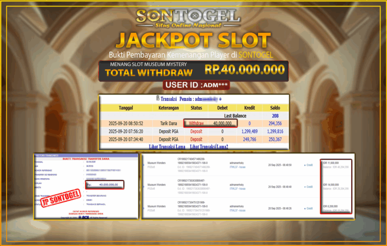 JP SONTOGEL SLOT MUSEUM MYSTERY Rp.40.000.000