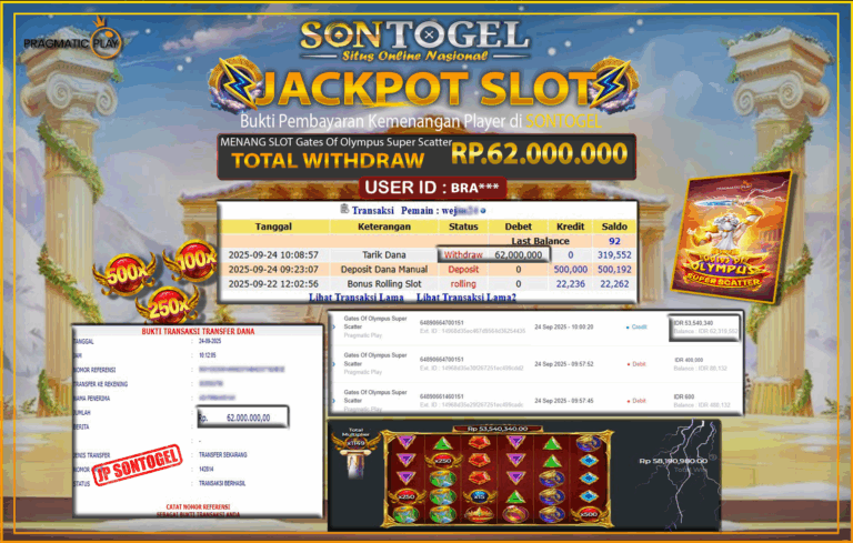 JP SONTOGEL SLOT GATES SUPER SCATTER Rp.62.000.000