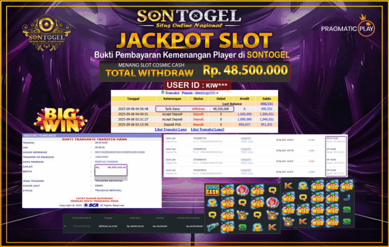 JP SONTOGEL SLOT COSMIC CASH Rp.48.500.000