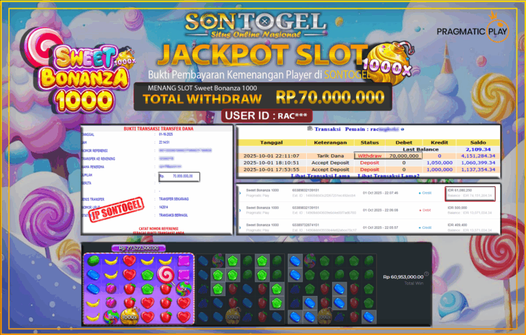 JP SONTOGEL SLOT SWEET BONANZA 1000 Rp.70.000.000