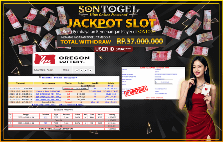JP SONTOGEL PASARAN TOGEL OREGON 9 Rp.37.000.000