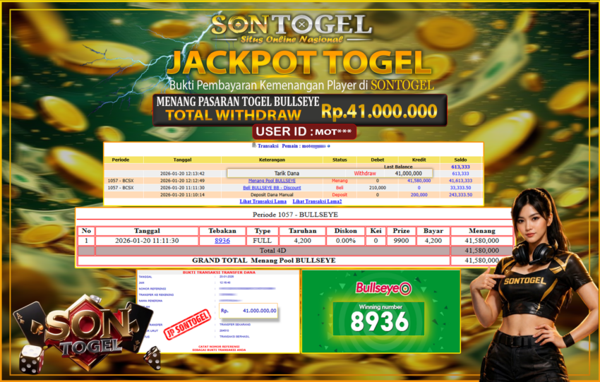BUKTI JP SONTOGEL – Situs Togel Online, Live Casino dan Slot Online Terpercaya yang terbukti membayar berapapun kemenangan Anda tanpa kekurangan sepeserpun. Jika Anda masih mencari Situs Terpercaya, jangan ragu untuk bermain di SONTOGEL. Dalam 1 akun Anda bisa menikmati semua permainan dengan minimal deposit hanya Rp. 5.000,- saja.