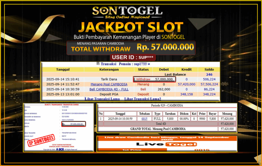 Berikut ini adalah BUKTI JP SONTOGEL yang sudah diproseskan ke rekening member kami