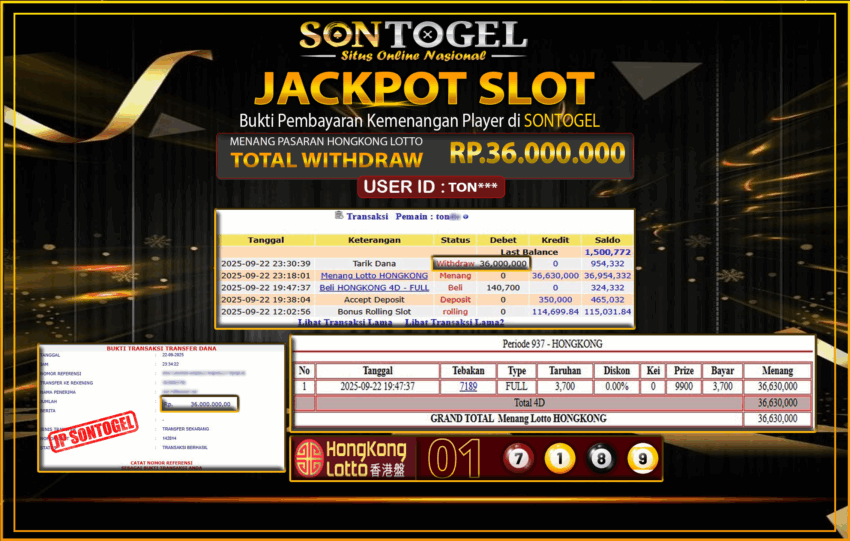 BUKTI JP SONTOGEL – Situs Togel Online, Live Casino dan Slot Online Terpercaya yang terbukti membayar berapapun kemenangan Anda tanpa kekurangan sepeserpun. Jika Anda masih mencari Situs Terpercaya, jangan ragu untuk bermain di SONTOGEL. Dalam 1 akun Anda bisa menikmati semua permainan dengan minimal deposit hanya Rp. 5.000,- saja.