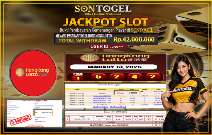 BUKTI JP SONTOGEL – Situs Togel Online, Live Casino dan Slot Online Terpercaya yang terbukti membayar berapapun kemenangan Anda tanpa kekurangan sepeserpun. Jika Anda masih mencari Situs Terpercaya,  jangan ragu untuk bermain di SONTOGEL. Dalam 1 akun Anda bisa menikmati semua permainan dengan minimal deposit hanya Rp. 5.000,- saja.
