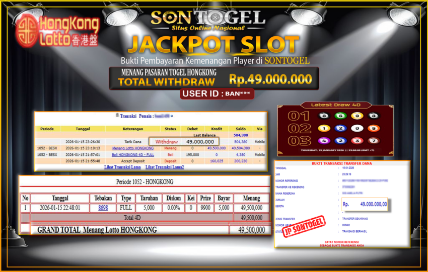 Berikut ini adalah BUKTI JP SONTOGEL yang sudah diproseskan ke rekening member kami