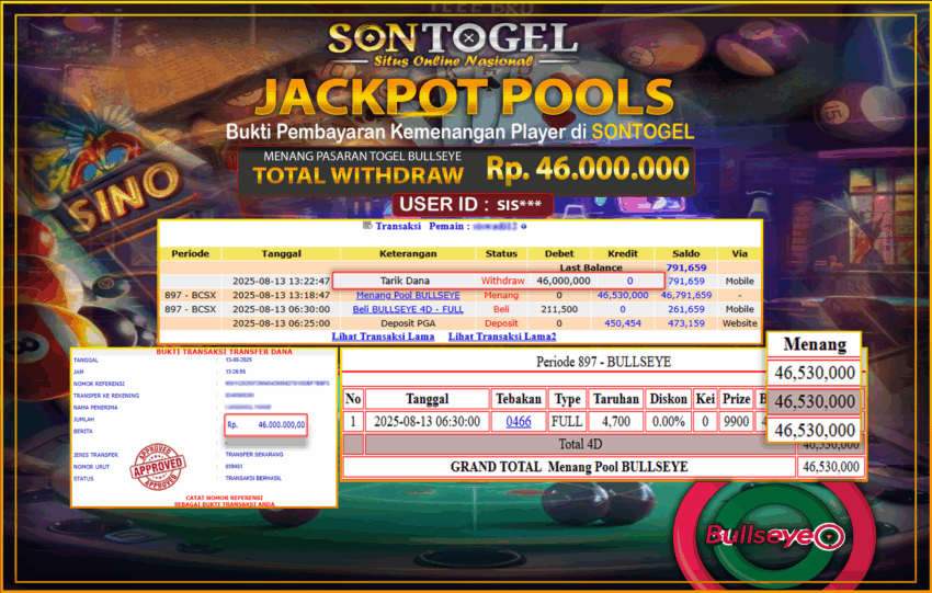 Berikut ini adalah BUKTI JP SONTOGEL yang sudah diproseskan ke rekening member kami
