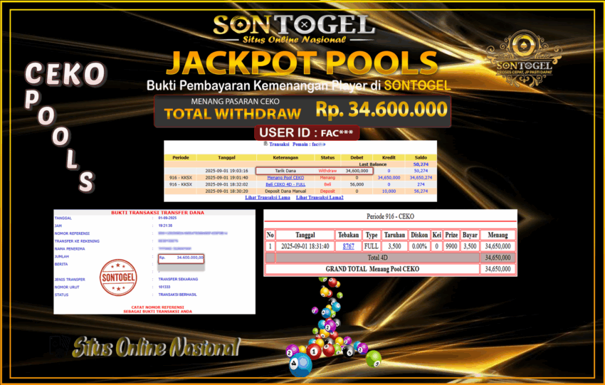 JP SONTOGEL PASARAN TOGEL CEKO Rp.34.600.000