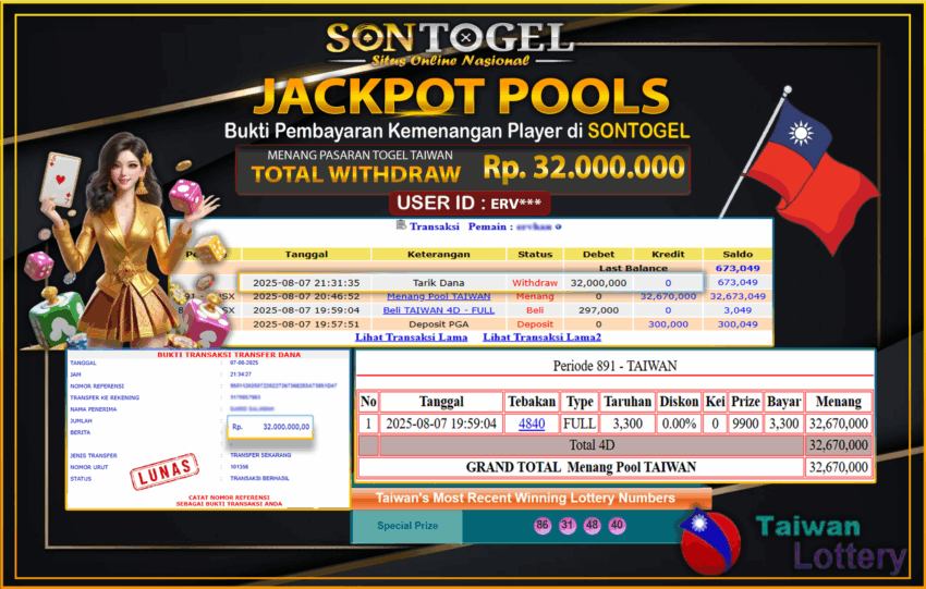 JP SONTOGEL PASARAN TOGEL TAIWAN Rp.32.000.000