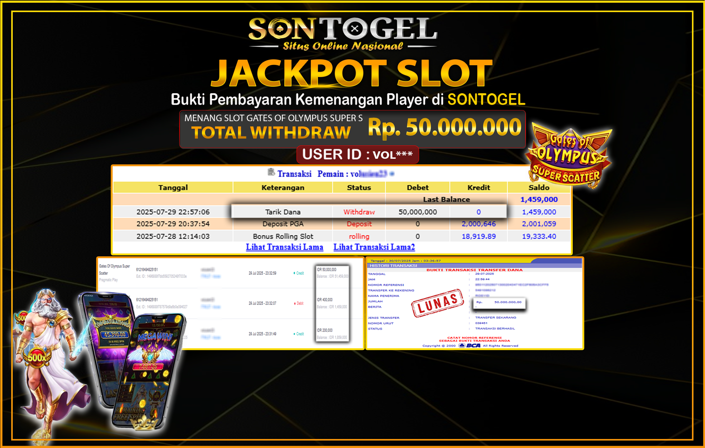 JP SONTOGEL SLOT GATES OF OLYMPUS Rp.50.000.000