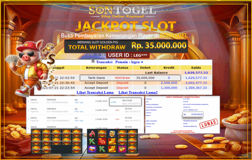 JP SONTOGEL SLOT GOLDEN PIG Rp.35.000.000