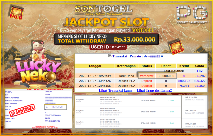 Selamat Kepada Member SONTOGEL dengan USER ID : DEW*** SLOT LUCKY NEKO di PG SHOFT sebesar RP.33.000.000,- LUNAS langsung di transfer ke rekening member tanpa kurang sepeserpun. Terimakasih telah mempercayakan SONTOGEL sebagai Situs Online Terpercaya dan Aman! Jangan tunggu tunggu lagi! langsung saja daftarkan akun bermain di SONTOGEL dan dapatkan bonus berlimpah setiap minggunya.