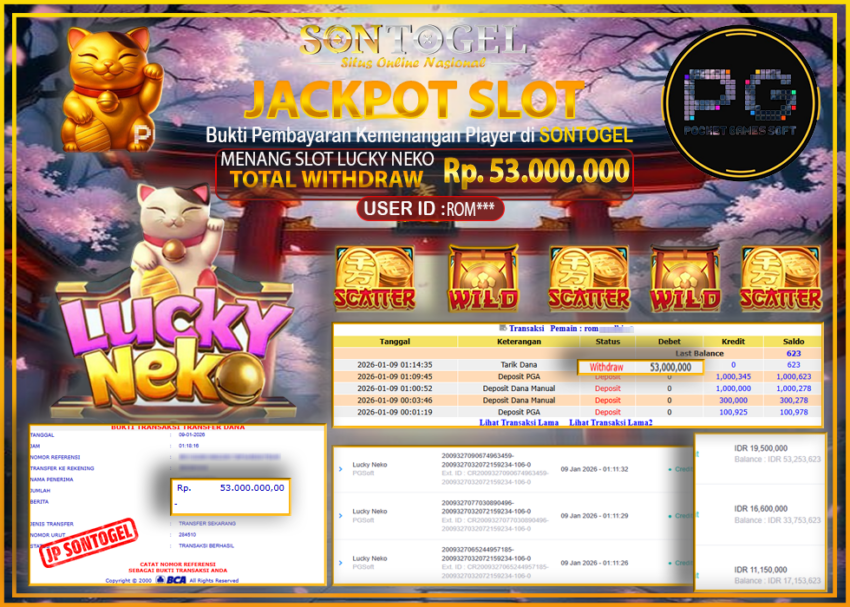 Selamat Kepada Member SONTOGEL dengan USER ID : ROM*** SLOT LUCKY NEKO di PG SOFT sebesar RP.53.000.000,- LUNAS langsung di transfer ke rekening member tanpa kurang sepeserpun. Terimakasih telah mempercayakan SONTOGEL sebagai Situs Online Terpercaya dan Aman! Jangan tunggu tunggu lagi! langsung saja daftarkan akun bermain di SONTOGEL dan dapatkan bonus berlimpah setiap minggunya.