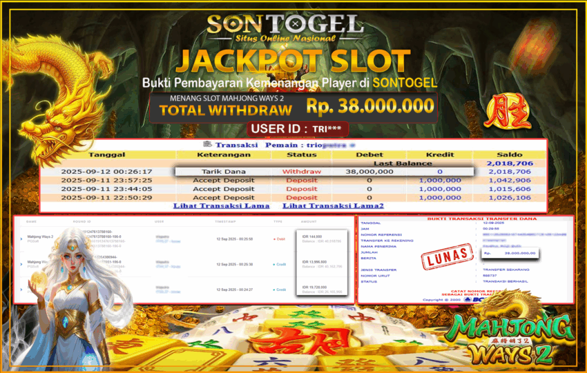 JP SONTOGEL SLOT MAHJONG WAYS 2 Rp.38.000.000