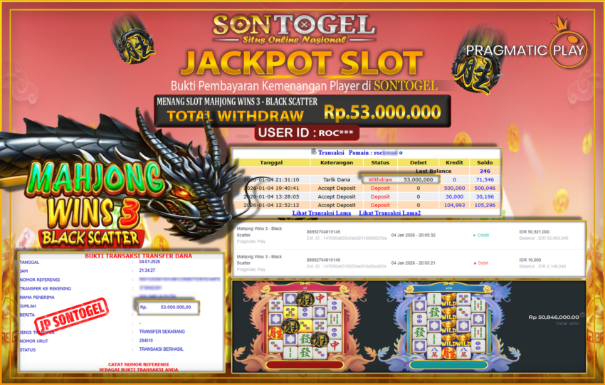 JP SONTOGEL SLOT MAHJONG WINS 3 Rp.53.000.000
